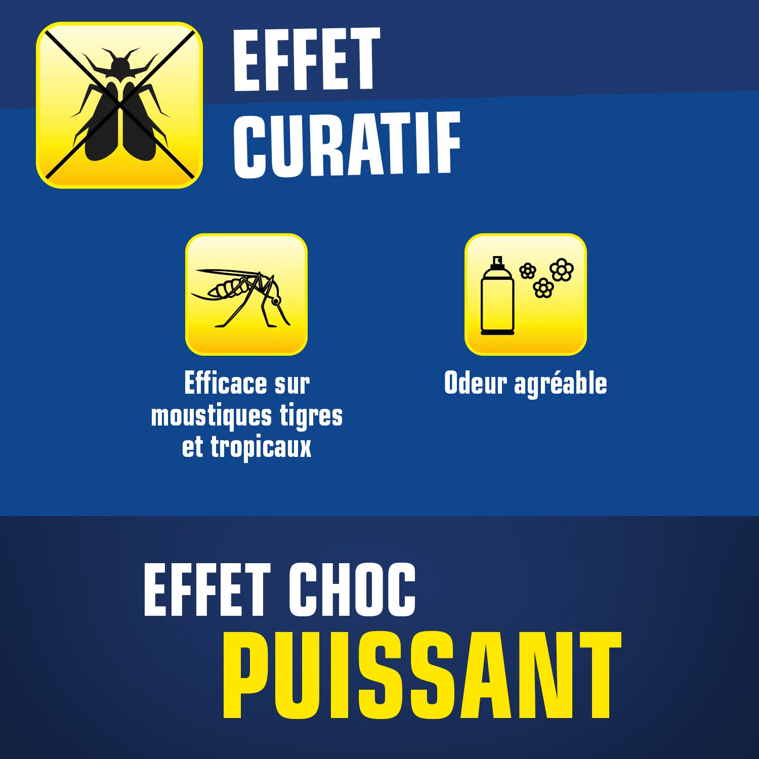 Moustiques, moustiques tropicaux, mouches, moucherons, mites… Effet choc puissant : action radicale et rapide.