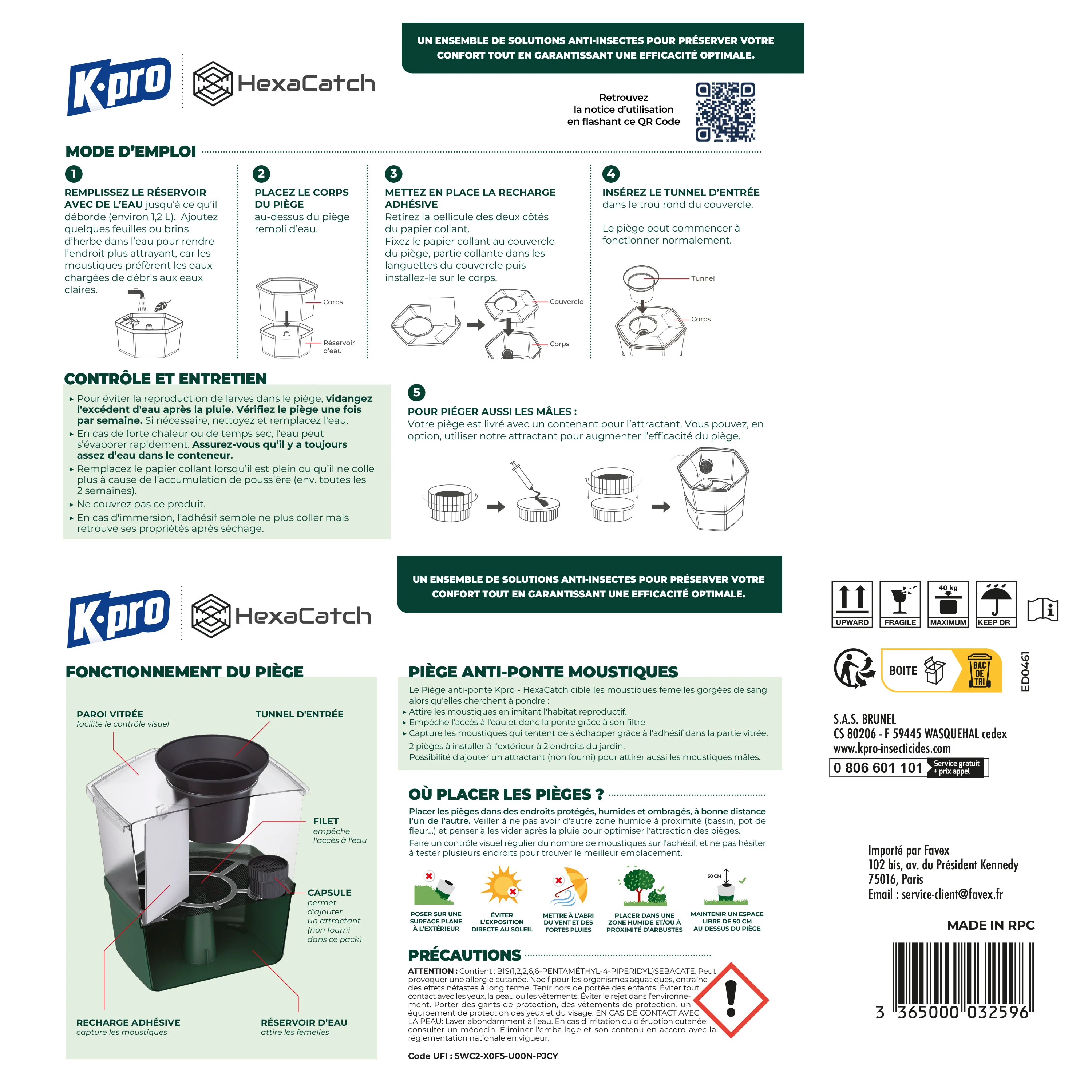 Il peut s'utiliser seul ou en complément de l'action du dispositif électrique moustiques Kpro-Hexatrap.