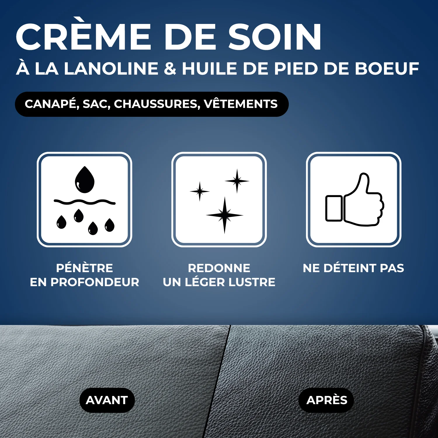 La crème permettra aussi d'en préserver la souplesse. A utiliser sur les cuir d'ameublement, la maroquinerie, les vêtements.