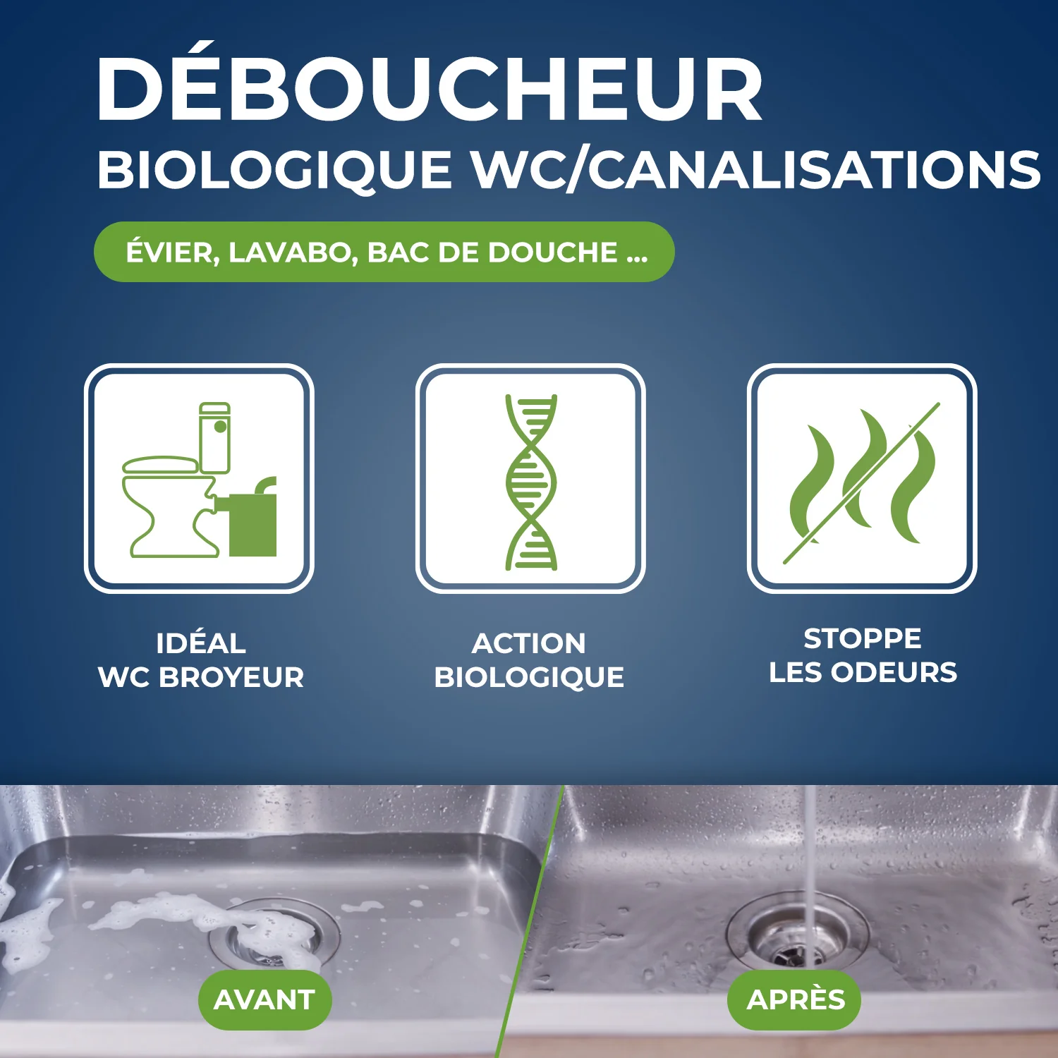 A la recherche d'un produit déboucheur biologique ? Sans acide, sans soude, le Déboucheur biologique Starwax contient des micro-organismes et des enzymes qui détruisent par action biologique les déchets organiques (savon, graisse, aliments...) à l'origine du bouchon et des odeurs.