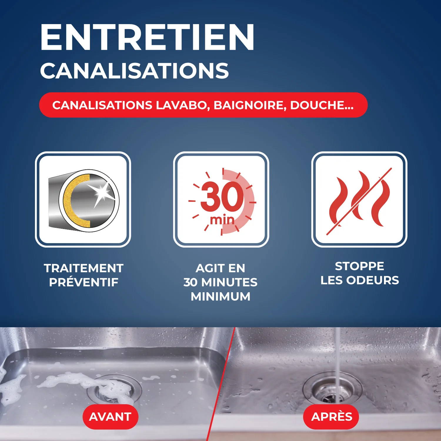 L'entretien javel pour canalisations Starwax nettoie en profondeur grâce à la javel, Il agit également sur les mauvaises odeurs et préviens les bouchons en empêchant les dépôts, Il permet d'entretenir lavabos, baignoires, évier et douches (sauf contre-indication du fabricant, Il est compatible avec les fosses septique, dans le respect du mode d'emploi, Une utilisation par semaine suffit pour conserver des canalisations impeccables toute l'année,