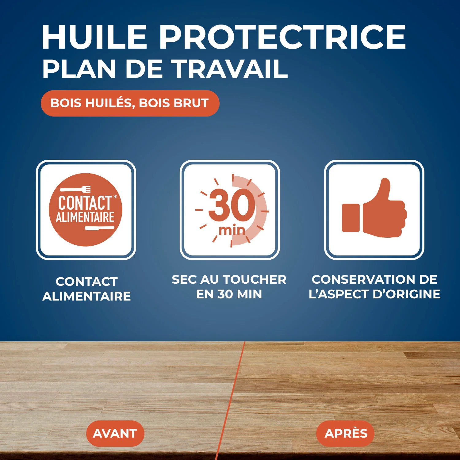 Huile protectrice pour plan de travail en bois huilé