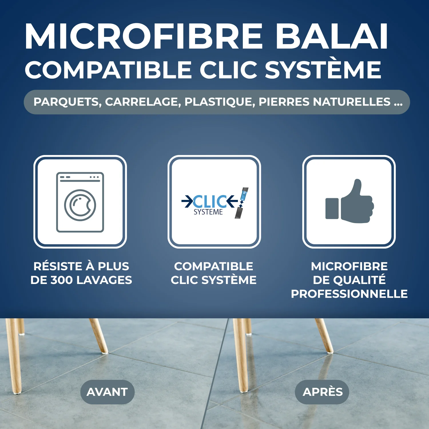 Microfibre balai Mains sèches Clic système