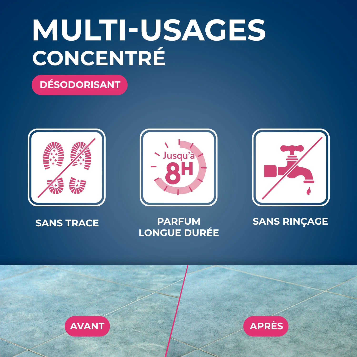 Le Nettoyant désodorisant Brise Marine nettoie, dégraisse et désodorise les surfaces (sauf contre-indication du fabricant) lavables de la maison, Son parfum très longue durée parfume la maison jusqu'à 8 heures, Le Nettoyant désodorisant s'utilise de manière régulière ou quotidienne sur les sols lavables sauf les parquets cirés, Il ne nécessite pas de rinçage,