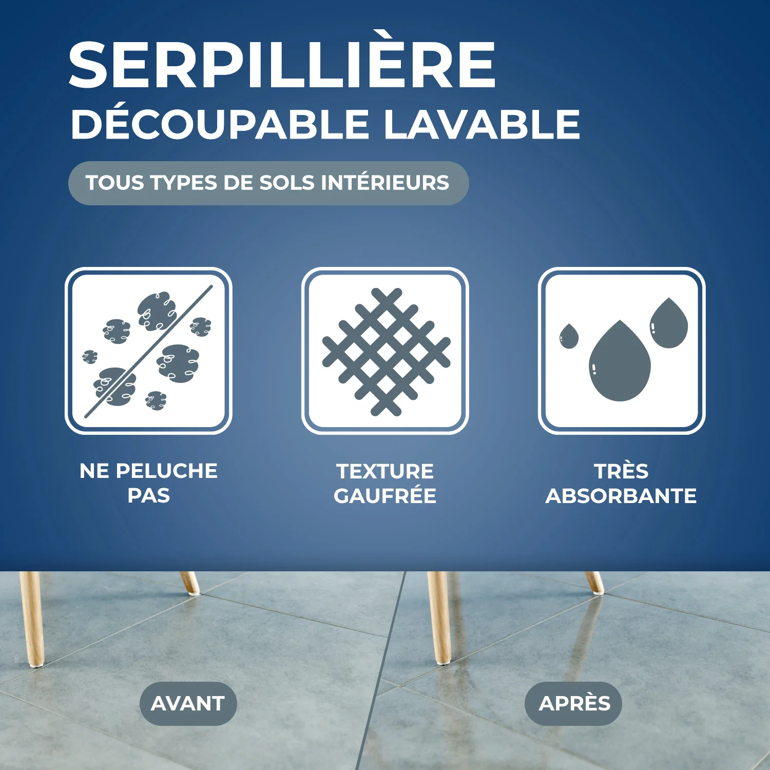 La grande taille (50 x 100 cm) lui permet d'être découpée en deux serpillIères.